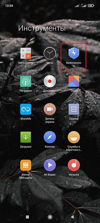 - Запускаем стоковое приложение Безопасность и выбираем Защита приложений;