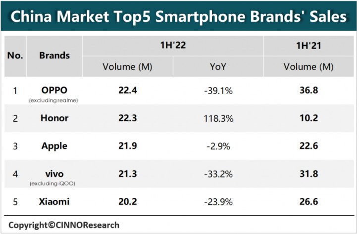 При этом продажи Apple в Поднебесной остаются стабильными, а бренд Honor показывает уверенный рост — прибавка по отгрузкам составила 118,3% по итогам первого полугодия.